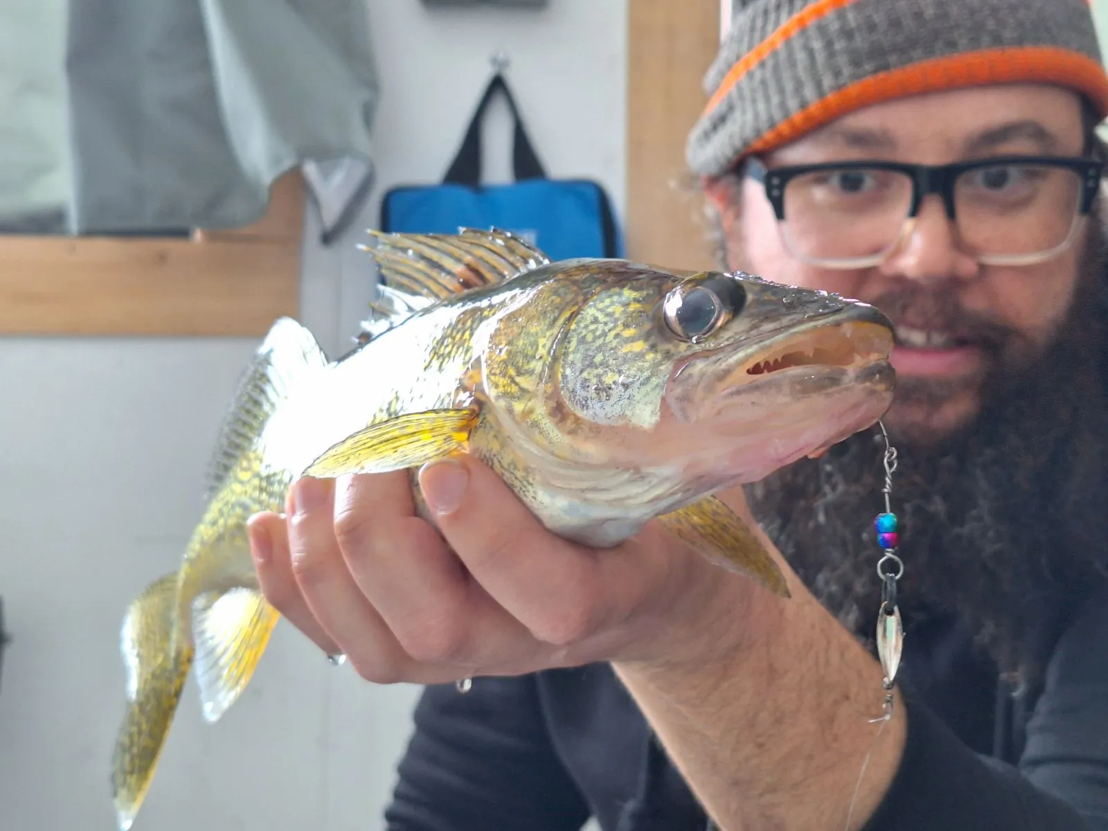 The Minnow Clapper is a lure designed for deadsticking with live minnows through the ice. The blades clap against the beads as the minnow moves adding noise and flash to the presentation. The Minnow Clapper was philosophized, conceived and hand made by the Kokemachine from the informative comedy fishing YouTube channel, 4 Eel Fishing.
